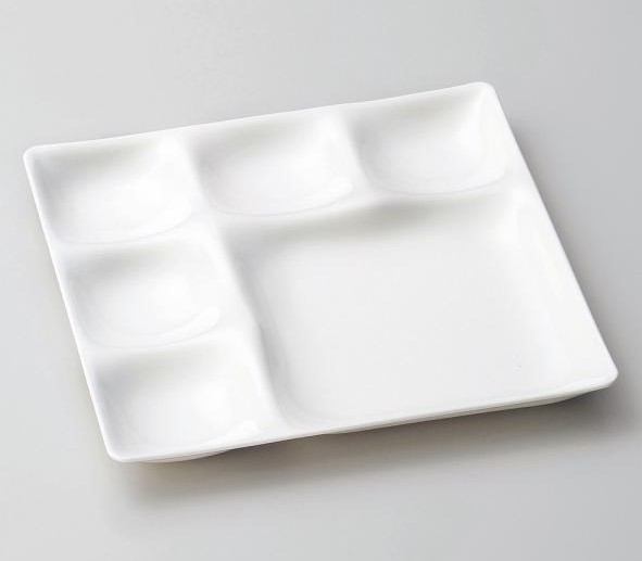 ・ビュッフェプレートプラスチック製6品皿(サイズ26㎝×26㎝)84皿
